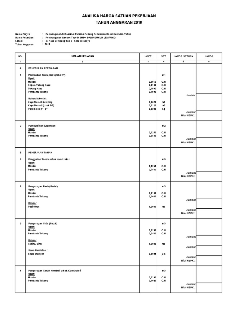 Analisa Harga Satuan Smpn Baru Dukuh Lempung