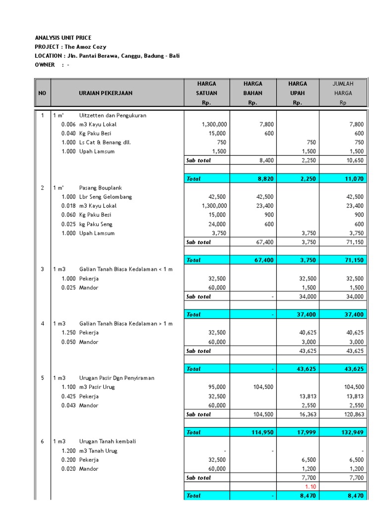 Pdf Daftar Rincian Analisa Harga Satuan Pekerjaan Zoel