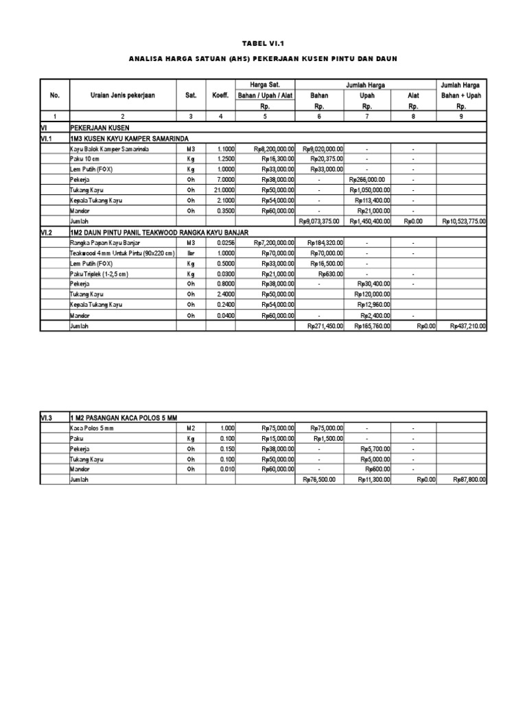 Pintu Kayu Analisa Harga Satuan