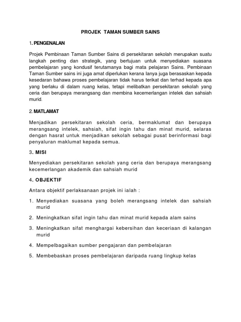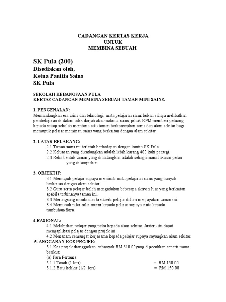 Contoh Kertas Kerja Taman Sains