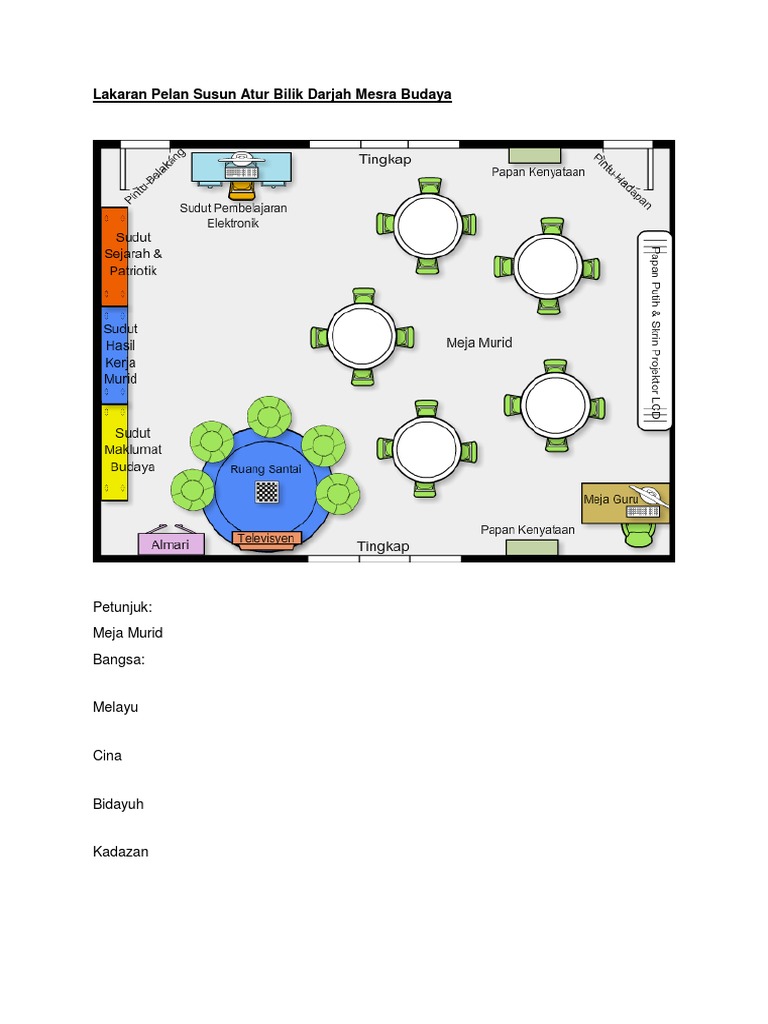 Lakaran Pelan Susun Atur Bilik Darjah Mesra Budaya